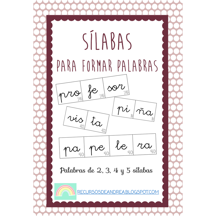 Tarjetas con sílabas para formar palabras. Las sílabas de una misma palabra van marcadas con un mismo número para evitar que se mezclen distintas palabras.